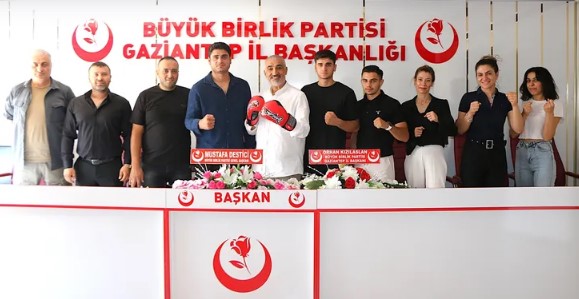 Büyük Birlik Partisi (BBP) Gaziantep İl Başkanı ve MKYK üyesi Orhan Kızılaslan, sporun ve sporcunun yanında olduğunu bir kez daha göstererek, Muay Thai ve Kick Boks alanında ülkemize büyük gururlar yaşatan sporcuları ağırladı. Avrupa şampiyonu Enes Bilben ve Ali Bilben ile birlikte, 9 kez Türkiye Şampiyonu olan Ferizon Gocuk ve diğer başarılı sporcular, BBP İl Başkanı ve MKYK üyesi Orhan Kızılaslan’ı BBP Gaziantep İl Başkanlığında ziyaret etti.