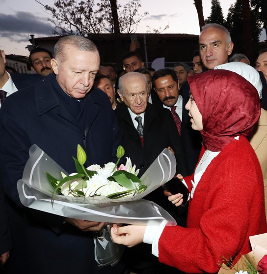 Cumhurbaşkanı Erdoğan ve beraberindekiler, burada Hatay Mustafa Kemal Üniversitesi öğrenci ve akademisyenlerinden oluşan koronun verdiği konseri dinledi.