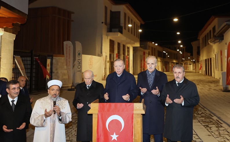 Gece gündüz demeden, 7 gün 24 saat çalışan herkesi tebrik eden Cumhurbaşkanı Erdoğan, “Sizlerin gözündeki şu sevinci görmemize vesile olan başta (Çevre, Şehircilik ve İklim Değişikliği Bakanı) Murat Kurum kardeşimi, mimarlarımızı, mühendislerimizi, işçi kardeşlerimi, yüklenici firmalarımızı canıgönülden tebrik ediyor, hepsine ülkem ve milletim adına teşekkür ediyorum” dedi.