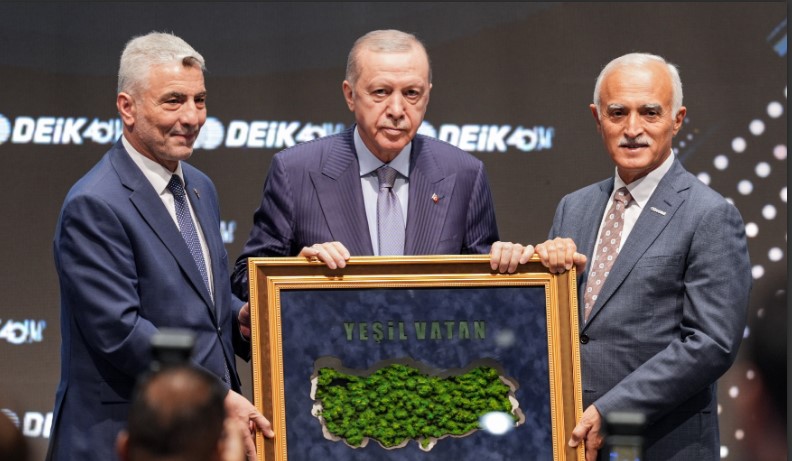 Konuşmaların ardından Ticaret Bakanı Ömer Bolat ve DEİK Başkanı Nail Olpak tarafından Cumhurbaşkanı Erdoğan’a günün anısına, DEİK’in toprakla buluşturacağı 40 bin fidanı temsilen bir tablo hediye edildi.