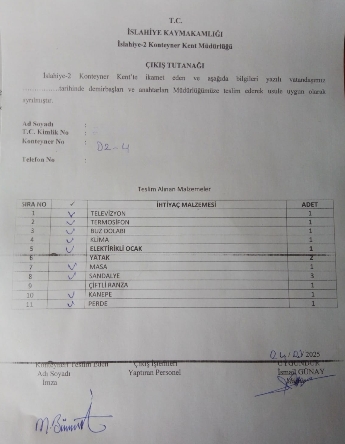 Depremzede Vatandaş M.C. teslim tutanağında yetkililerin çek-yat’ı işaretlemene gerek yok demesi karşısında bunları almadığım tamamıyla ne varsa hepsini teslim ettiğim kayıtlarda da bilinsin diyerek öyle imzaladığını ifade etti.