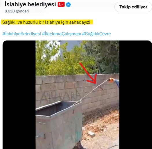 İslahiye Belediyesi Yaz Mevsiminin ortalarına gelindiği süreçte halen sineklerle etkin bir mücadele yapamadı. Halk hala sineklerden şikâyetçi. Bu duruma farklı bir çözüm düşünen Belediye Sosyal Tanıtımlar kuşağında yaptığı ilaçlama görüntüleri ile sorunu kökünden çözdüğünü sandı.