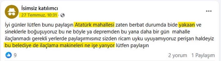 İLAÇLAMA YETERSİZ, VATANDAŞ HALA ŞİKAYETCİ